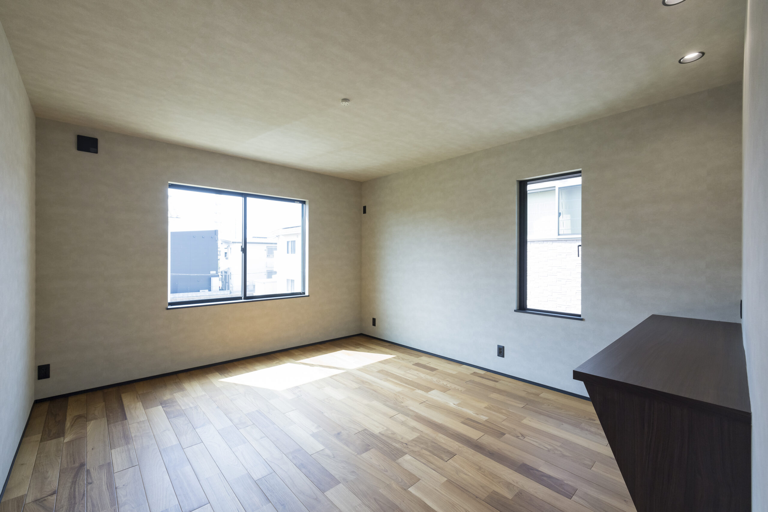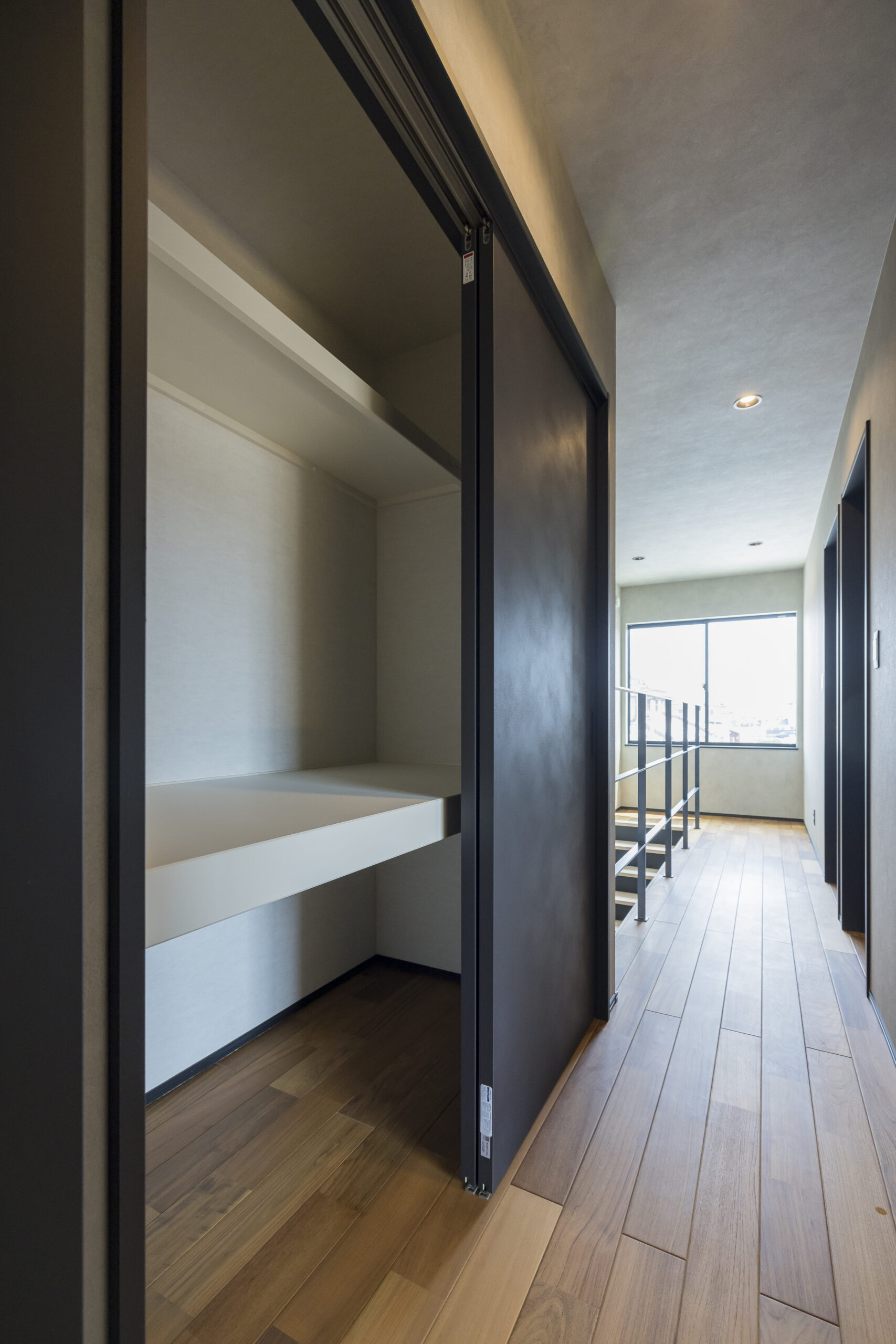 2階には3つの居室を配置。子ども部屋や寝室、趣味の部屋などライフスタイルに合わせて柔軟に使えます。奥には大容量のファミリークローゼットを設け、家族全員の衣類をまとめて収納可能。朝の身支度や片付けがスムーズに行える工夫が詰まっています。